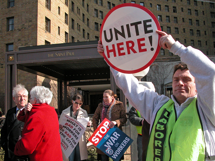 The Saint Paul Hotel became the target of several union demonstrations as negotiations with UNITE HERE Local 17 stalled last winter.