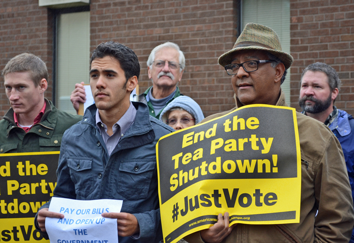 On their lunch break, Jones and Lawrence joined a demonstration outside the Social Security Administration, calling on Tea Party Republicans to end the shutdown and stop holding the economy – and the federal government – hostage. [Click here to add your voice.]