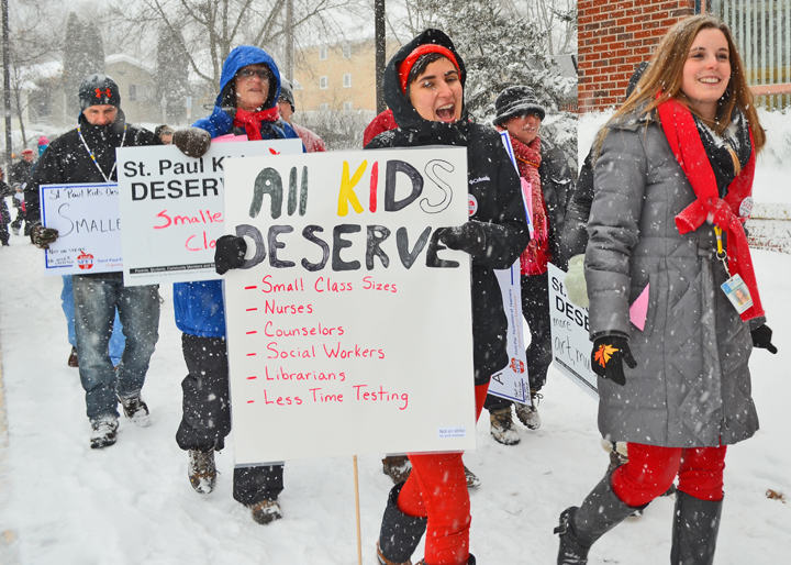 […] Through joint parent, student, and teacher organizing, the Saint Paul Federation of Teachers just settled a landmark contract, limiting class sizes and standardized testing, and emphasizing culturally relevant education and access to pre-school, while creating a path for teacher aides to become credentialed. For more information, check out this article: https://advocate.stpaulunions.org/2014/01/30/parents-students-support-teachers-walk-in-demonstrations… […]