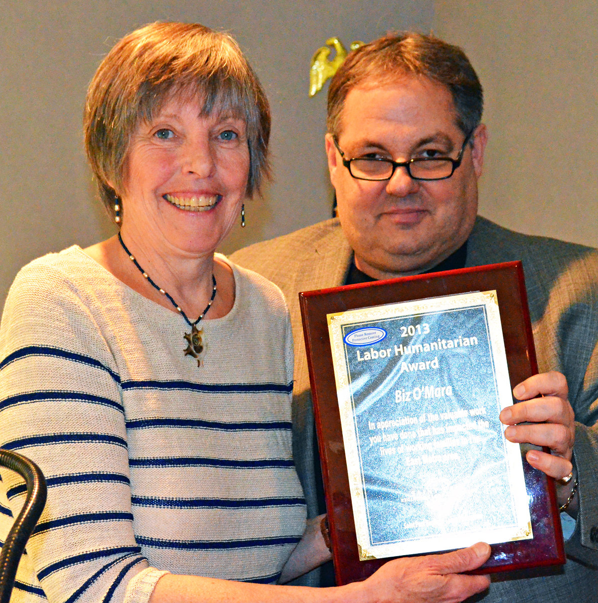 The St. Paul Regional Labor Federation, AFL-CIO, awarded its 2013 Humanitarian Award to longtime United Way staff member Elizabeth “Biz” O’Mara. President Bobby Kasper presented O’Mara with the award at the RLF’s May delegate meeting.