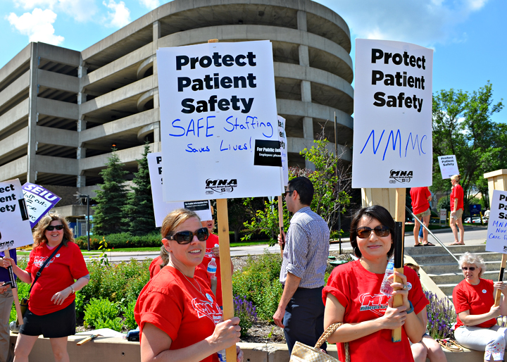 MNA and SEIU Healthcare Minnesota filed charges with the NLRB after the hospital fired one employee, revoked work agreements and forced employees to work weekends, “repeatedly interrogated” staff about their union activities, warned employees and union staff that talking about unions was prohibited and threatened to file charges if discussions continued – all because they participated in the June picketing.