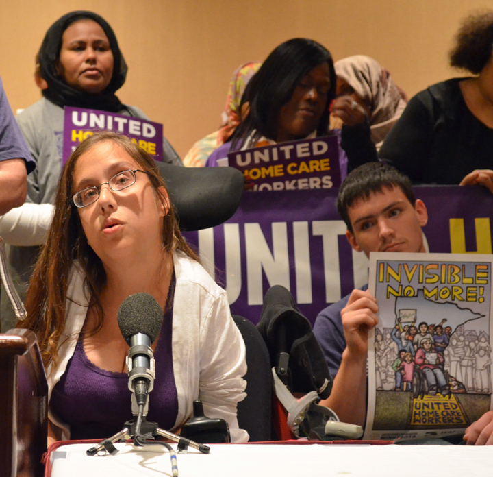 “Invisible No More” was the slogan of home care workers’ organizing campaign. Nikki Villavicencio, a home care recipient from Maplewood, said the new contract provides more than just wages and benefits; it shows the state values the freedom home care workers provide thousands of Minnesotans who choose to stay in their homes.