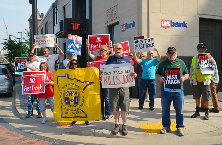 “I think it’s important for union members to stand in solidarity, even if it’s across state lines,” CWA Minnesota State Council President Mona Meyer said. “This is an international trade deal that will affect everybody.”