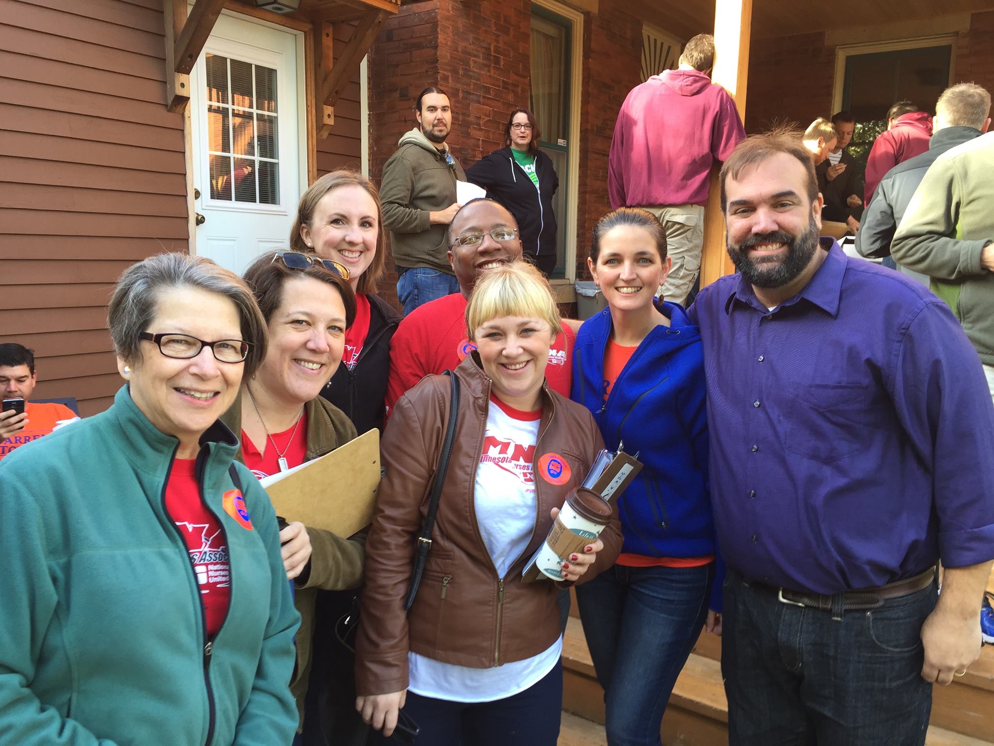 Volunteers with the Minnesota Nurses Association door knock for Darren Tobolt (R) in St. Paul’s Ward 2