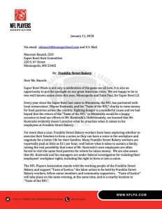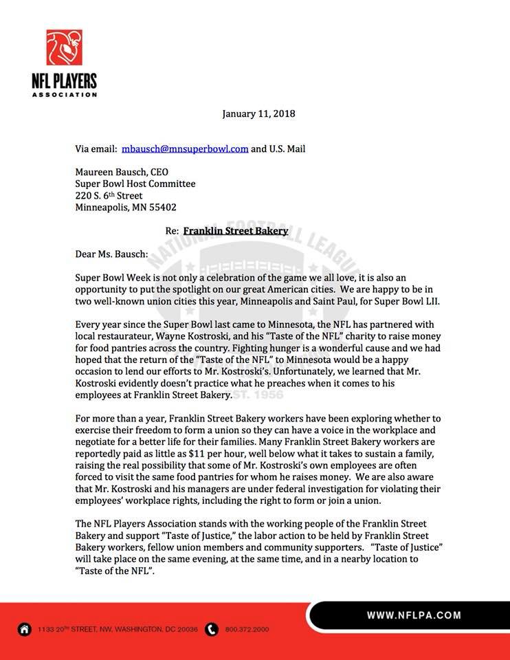 DeMaurice Smith, executive director of the NFLPA, sent letters this week putting bosses at the university and Franklin Street Bakery on notice that the players stand squarely – and publicly – on the side of working people in Minnesota.