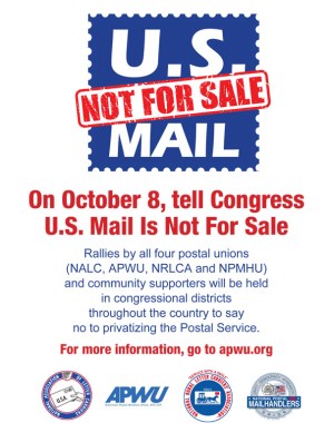 In the Twin Cities, union members and supporters will rally over the noon hour Oct. 8, outside the Minneapolis Post Office, 307 S. 4th Ave.