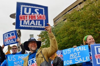 Workers who rallied in downtown Minneapolis today said they fear privatization would drastically reduce mail service — especially in rural areas of the country — and cost many of the agency’s 500,000-plus employees their jobs. They pointed out the USPS is the nation’s second-largest employer of military veterans, and union jobs at the post office offer family-sustaining job opportunities to people of all educational backgrounds, races and ethnicities.