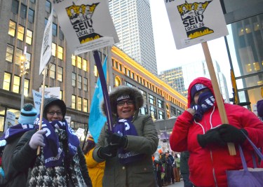 Some 4,000 Twin Cities janitors walked off the job Feb. 27 for higher wages, paid sick days and other demands.