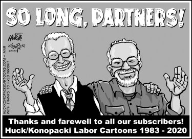 Huck and Konopacki won’t stop drawing. Fans will be able to view new work online at huckkonopackicartoons.com. Still, losing the cartoon syndicate is a sobering sign of the times for both the labor movement and print media.