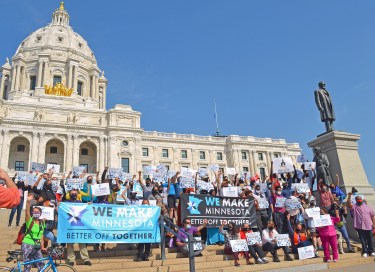 The state AFL-CIO, Education Minnesota and SEIU Minnesota State Council are part of a broad coalition of faith, community and advocacy groups that staged a voter registration fair Sept. 23 in St. Paul, followed by a march to the Capitol.