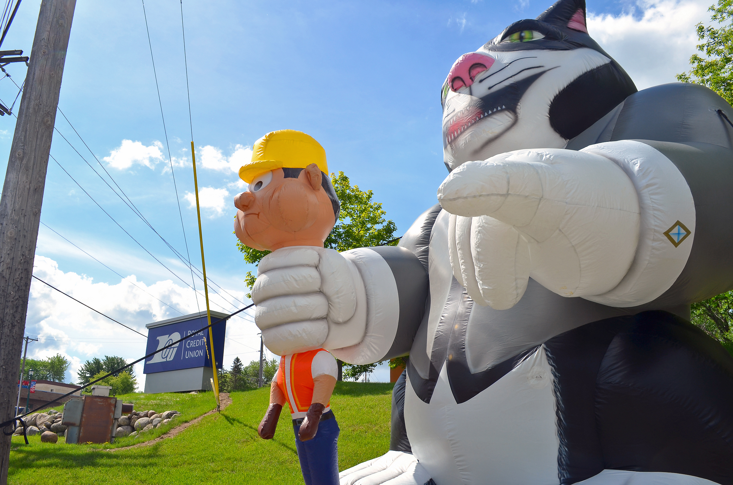 As a result, LIUNA and other unions active in the #NotOnMyWatch campaign decided to drop in on the ribbon cutting in Inver Grove Heights – and bring along their inflatable fat cat.