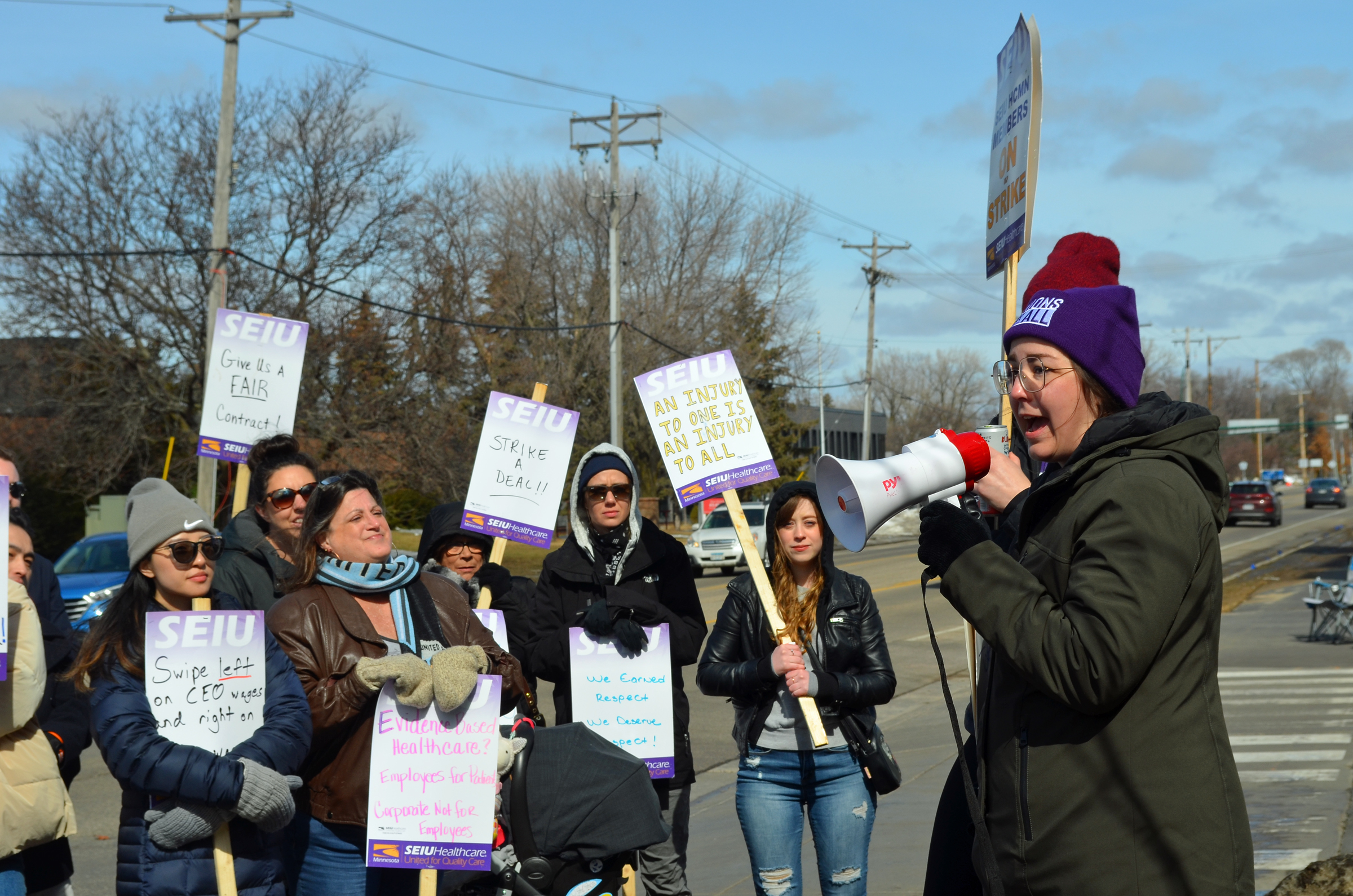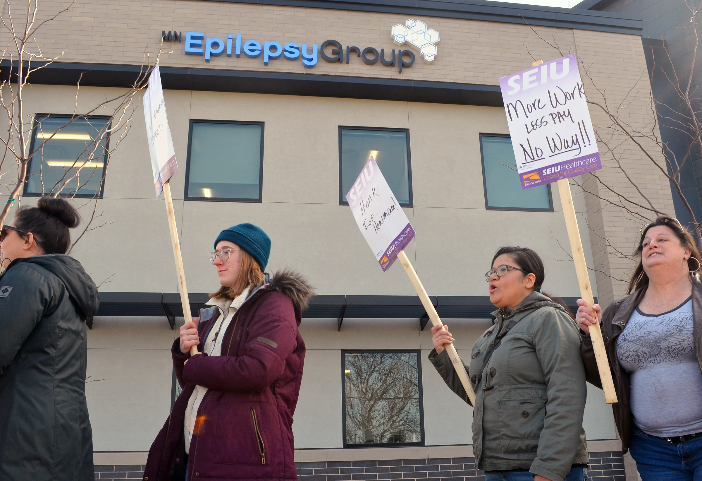Minnesota Epilepsy Group workers picketed outside the employer’s headquarters in Roseville on the last day of their March strike.