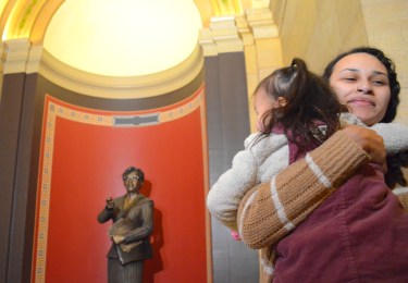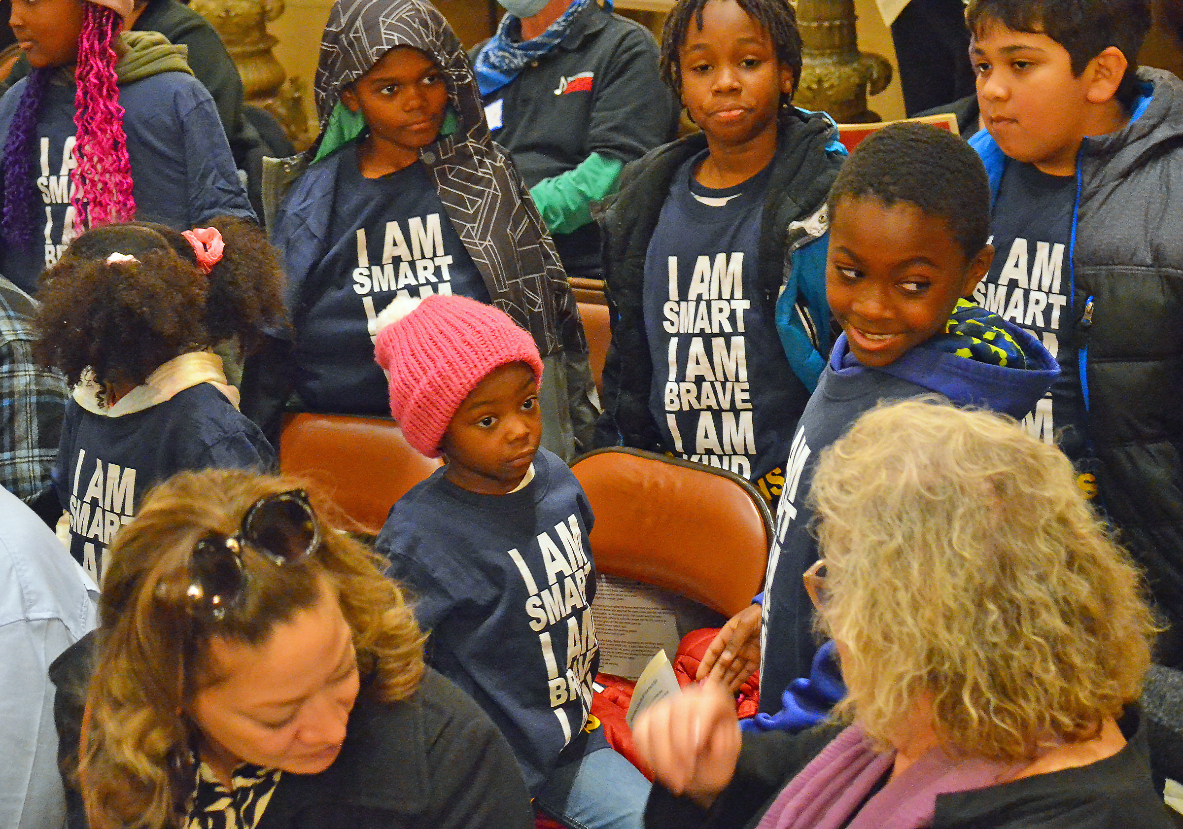 The first students to get a look at the new statue, appropriately, were part of a delegation from the Minneapolis elementary bearing Stone Johnson’s name.