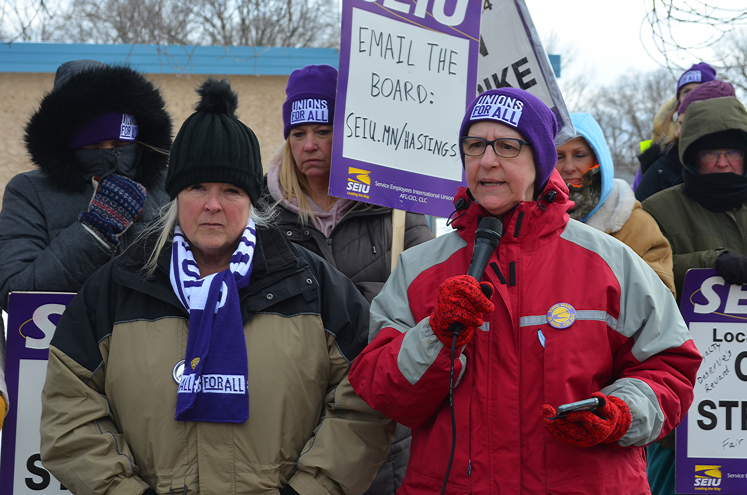 “I have a message for the Hastings School Board,” Gibbons said. “Shame on you. Shame on you for not coming to the table and not coming to this meeting and talking to these workers.”