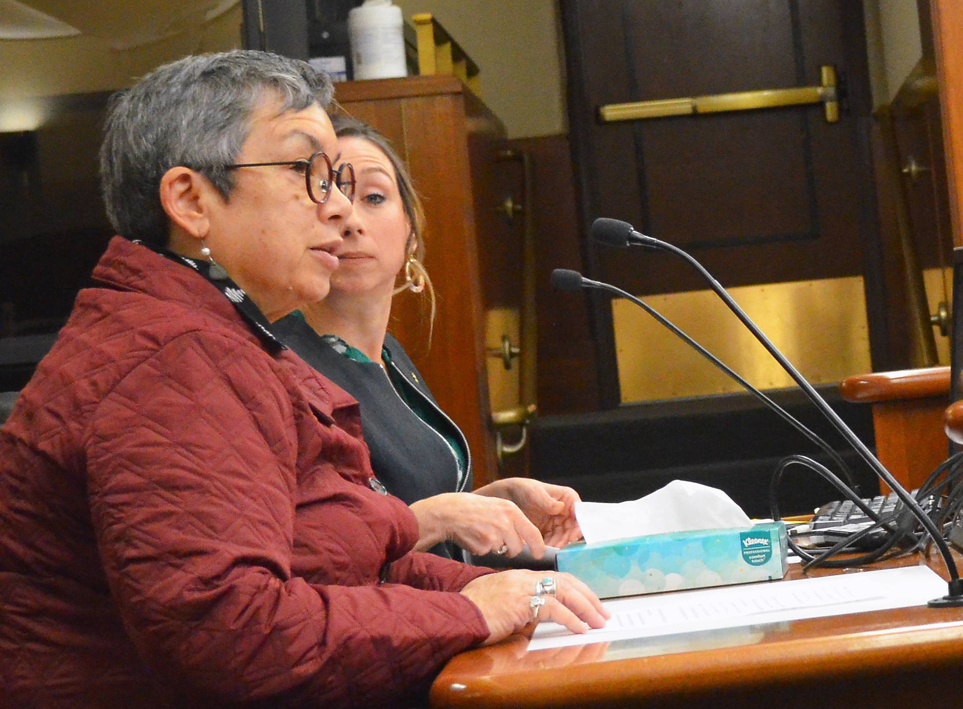 Minnesota AFL-CIO President Bernie Burnham (L) testified in support of the captive audience meeting legislation, authored by Rep. Kaela Berg in the House.