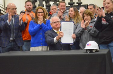 Minnesota Gov. Tim Walz signed one of labor’s top policy priorities into law Tuesday at the St. Paul Pipefitters’ training center, putting in place new training requirements for tradespeople working at oil refineries in the state.