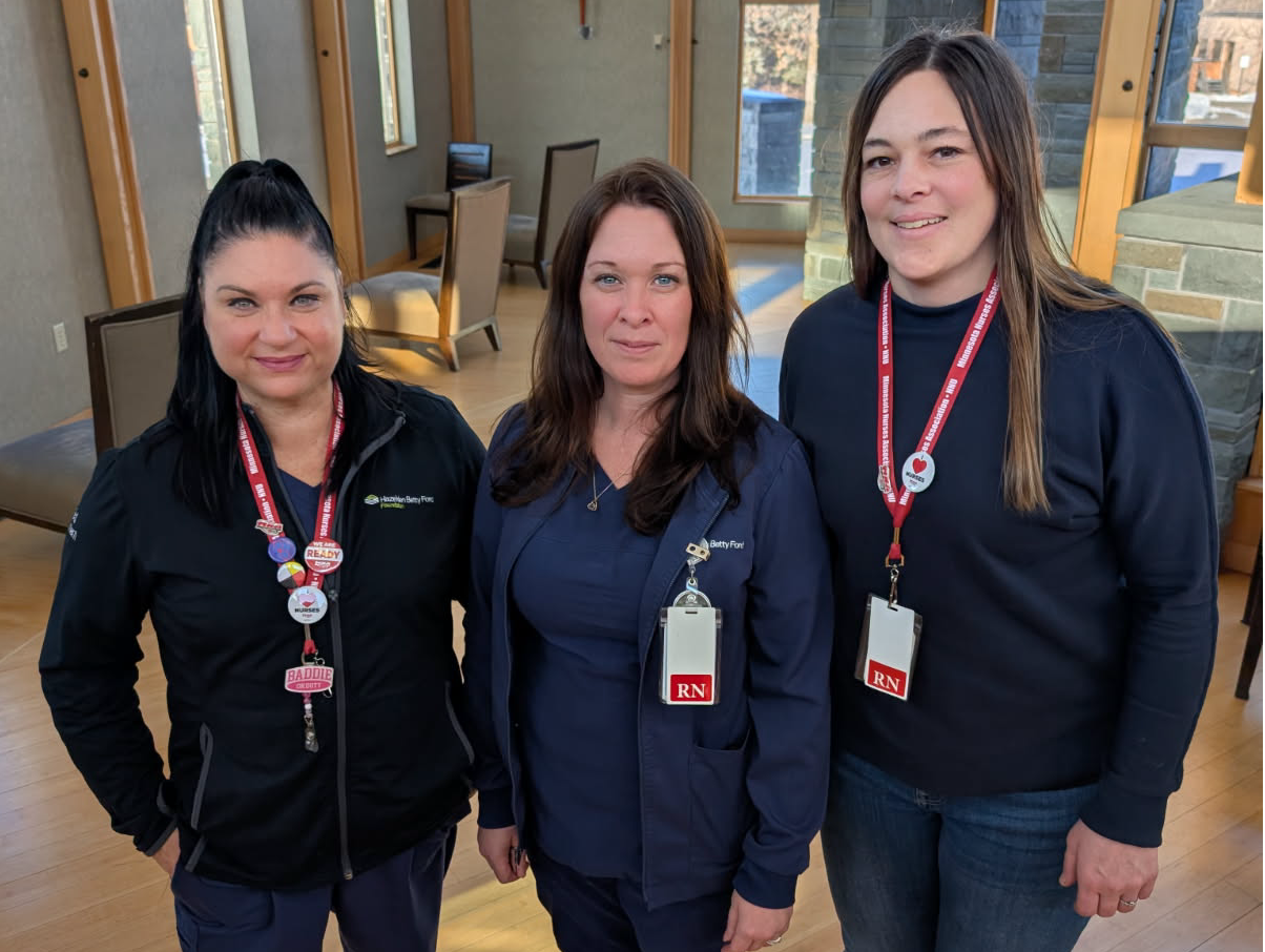 Newly unionized Hazelden staff members include (L to R) Jody Burton, an LPN, and registered nurses Crystal Olson and Meaghan Albrecht. (photo courtesy MNA)