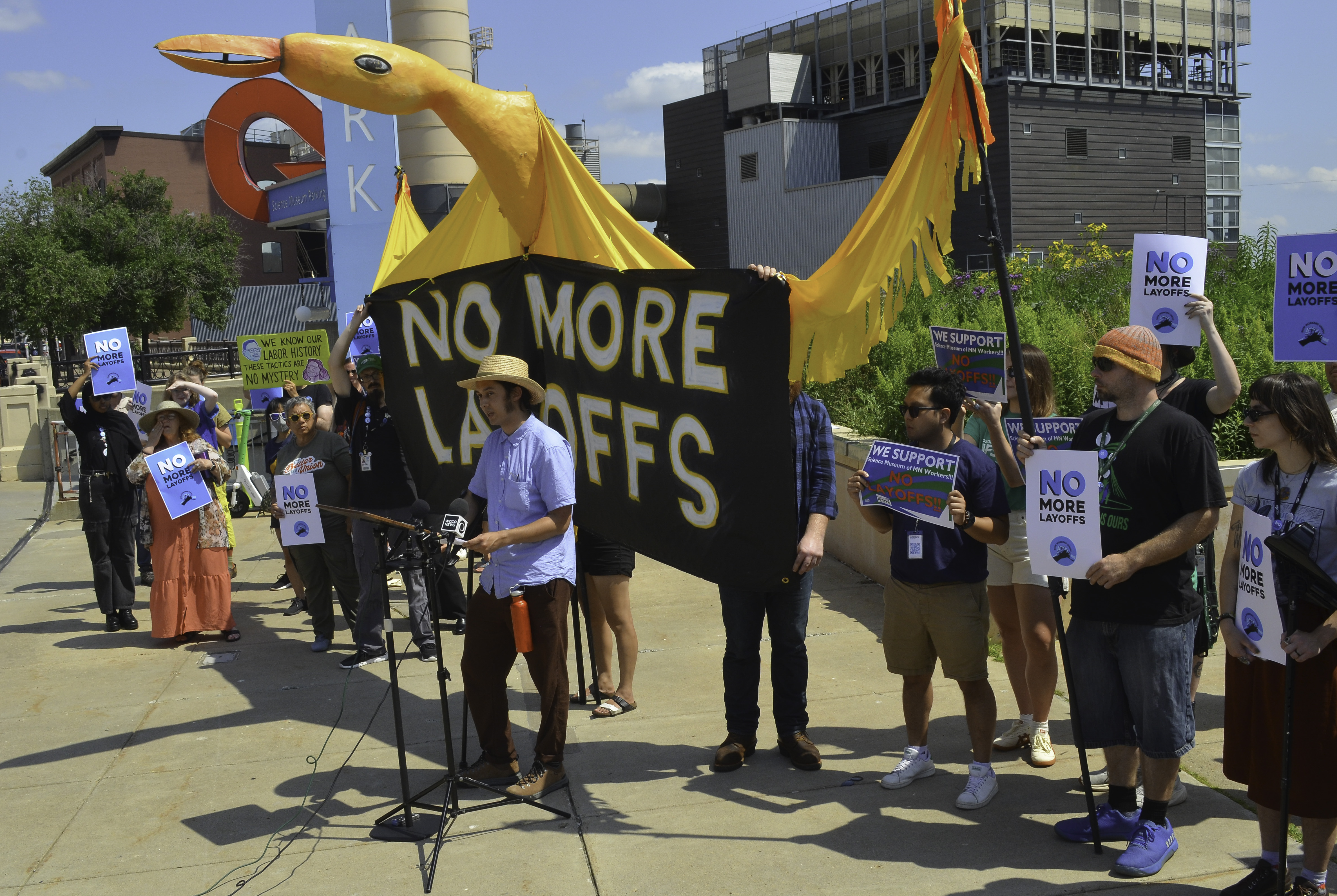 Dzenowski and other Science Museum workers – some impacted by the layoffs, some not – laid bare their frustration with the process and their concerns about the institution’s future during a press conference July 29 outside the museum’s Kellogg Boulevard entrance.