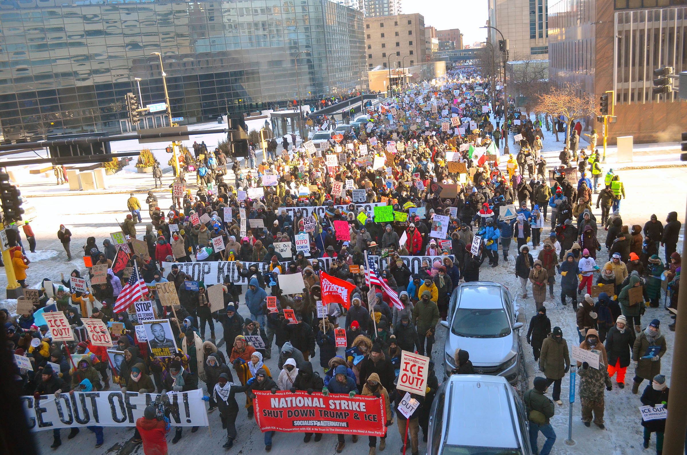 Hundreds of businesses closed Jan. 23, as tens of thousands of protesters marked a “Day of Truth and Freedom” in the streets of downtown Minneapolis, marching in subzero temperatures to demand an end to federal immigration operations in Minnesota.