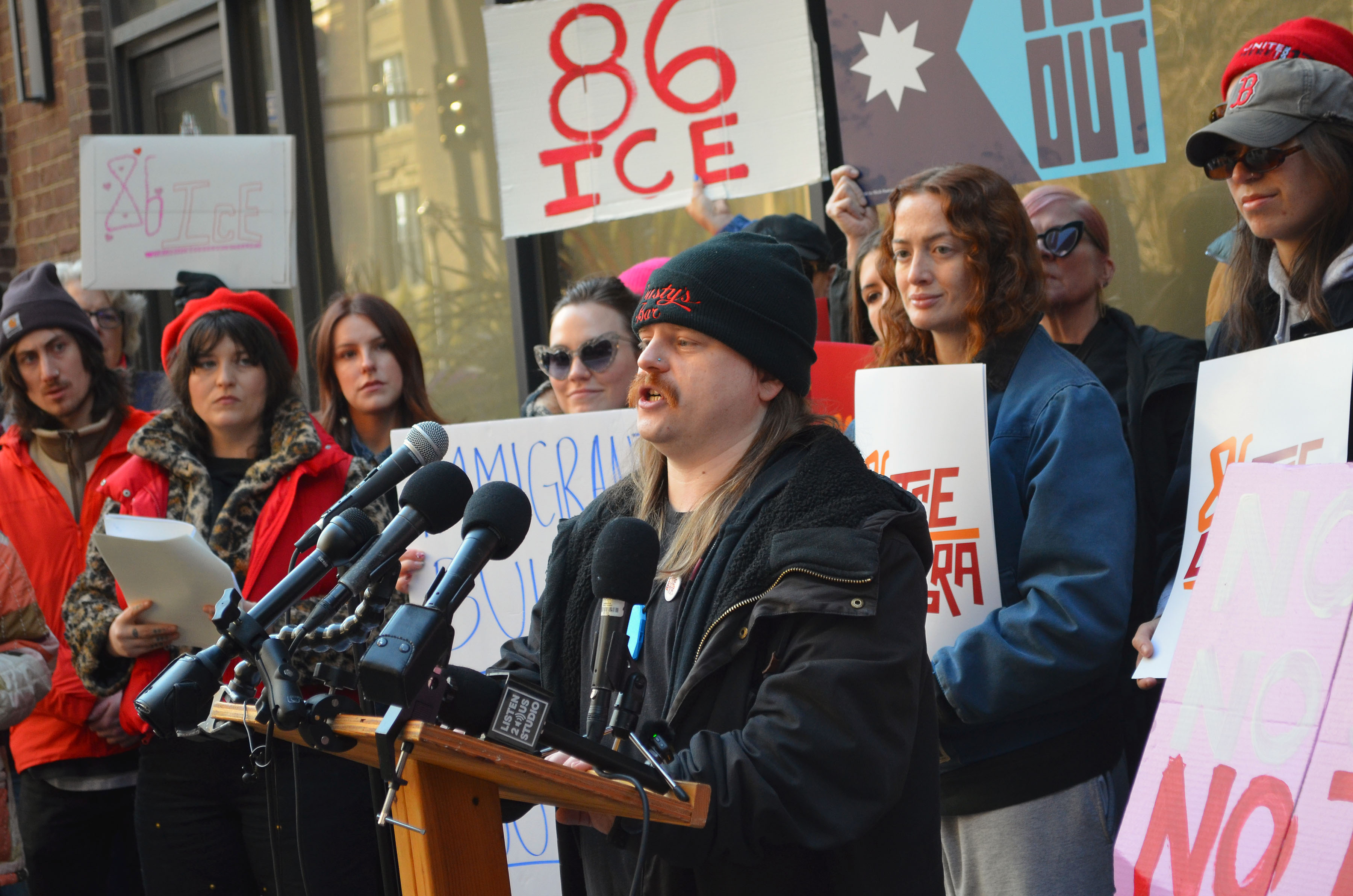 Several non-immigrant workers at the rally offered shout-outs to co-workers they worry they will never see again. Hazel, a server whose employer took the “86 ICE!” pledge, said workers in her restaurant were willing to strike to keep their colleagues safe.
