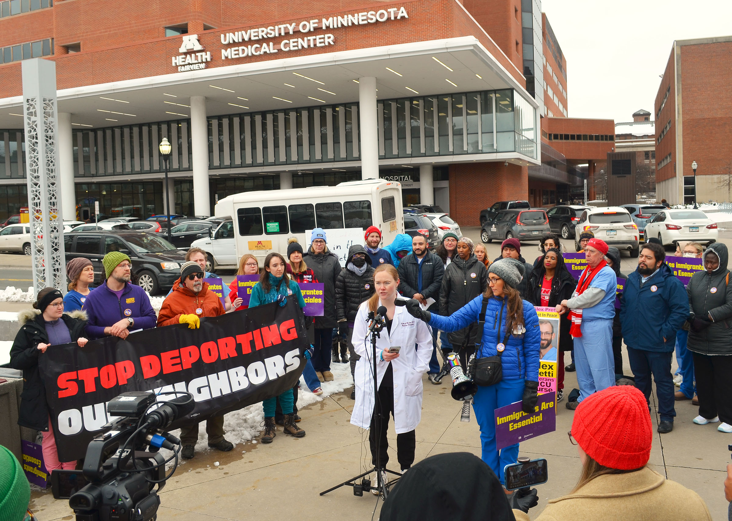 Union nurses, doctors and support staff called a press conference Feb. 20 outside the U of M Medical Center after delivering a list of demands to Fairview, citing unanswered questions and persistent concerns about how the system is navigating the immigration chaos.