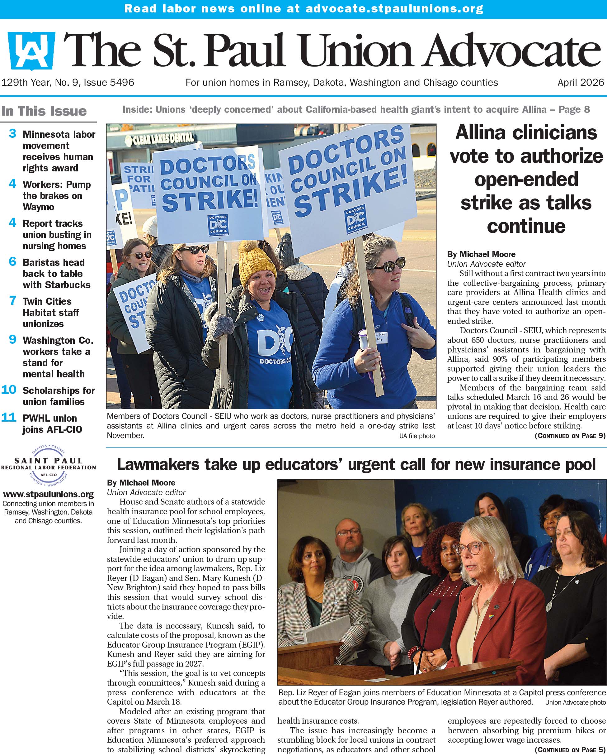 To request a back issue of The Union Advocate from 2009 to present, call 651-222-3787, x112; or e-mail mmoore@stpaulunions.org.