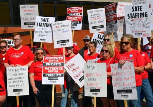 The new contracts include 10% raises over the next three years, new tools to address workplace violence and requirements that hospitals provide coverage for nurses when they go on breaks.