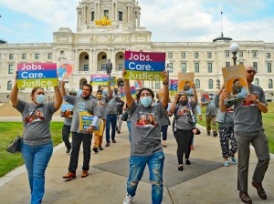 Nurses, janitors, educators and other essential workers spelled out exactly what they want from state lawmakers during a rally in downtown Minneapolis.