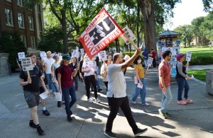 In contract negotiations with Allina, union nurses are standing together to defend their health insurance. And outside the health care provider’s Minneapolis headquarters today, the community showed it’s standing with nurses. Informational picketing of Allina Commons drew hundreds of nurses, who arrived in busloads from five metro-area Allina facilities. Supporters from the community, including […]