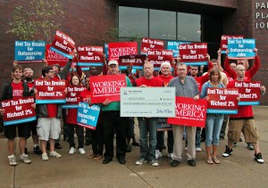 BURNSVILLE – If millionaires don’t get a tax cut, then no one gets a tax cut. That’s 2nd District Congressman John Kline’s stance, and it was the target of workers protesting outside Kline’s Burnsville offices Sept. 12 during a national day of action for tax fairness sponsored by Working America, the AFL-CIO’s community affiliate. “John […]